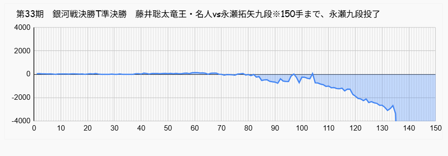 本局形勢※150手まで、永瀬拓矢九段投了