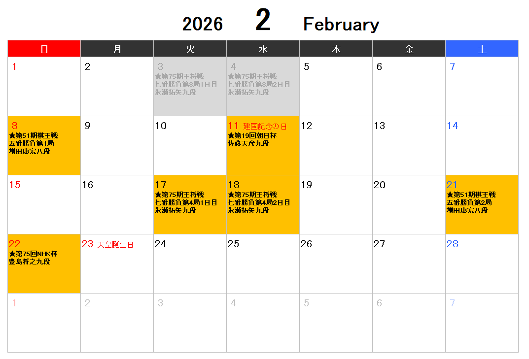 【藤井聡太※今後の対局予定/確定】▼2026年2月度分▼